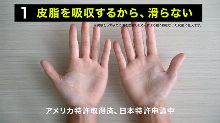 皮脂を吸収する力+水分を弾く力で最高クラスの滑り止め効果を発揮