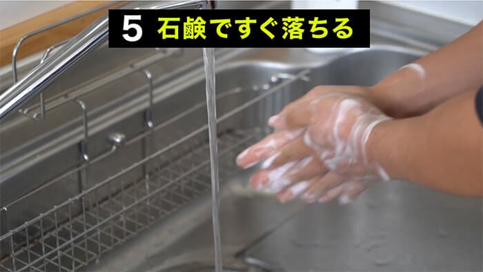 石鹸で簡単に落とせる!