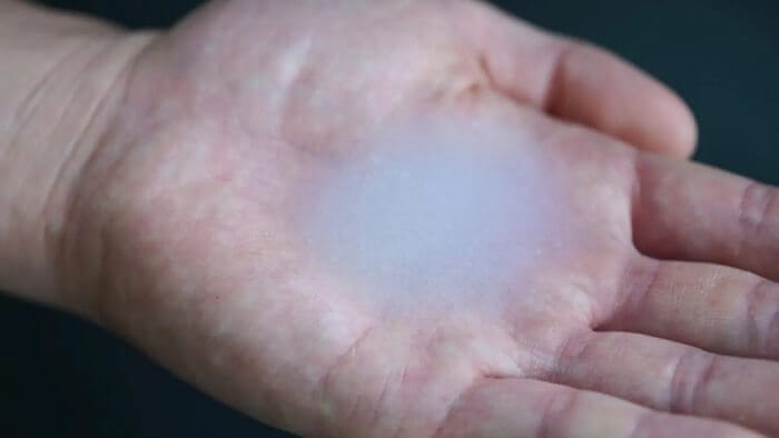 チョークレスを手全体に擦りこむことで、手汗が出ることを抑制するだけではなく、